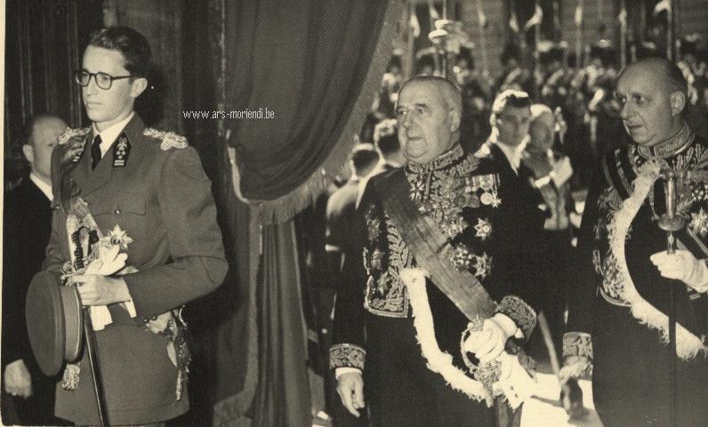 Te Deum, 21 juli 1953. Koning Boudewijn, Graaf Carton de Wiart en Graaf de Ghellinck d'Elseghem Vaernewyck, Ceremoniemeester van het Hof.
