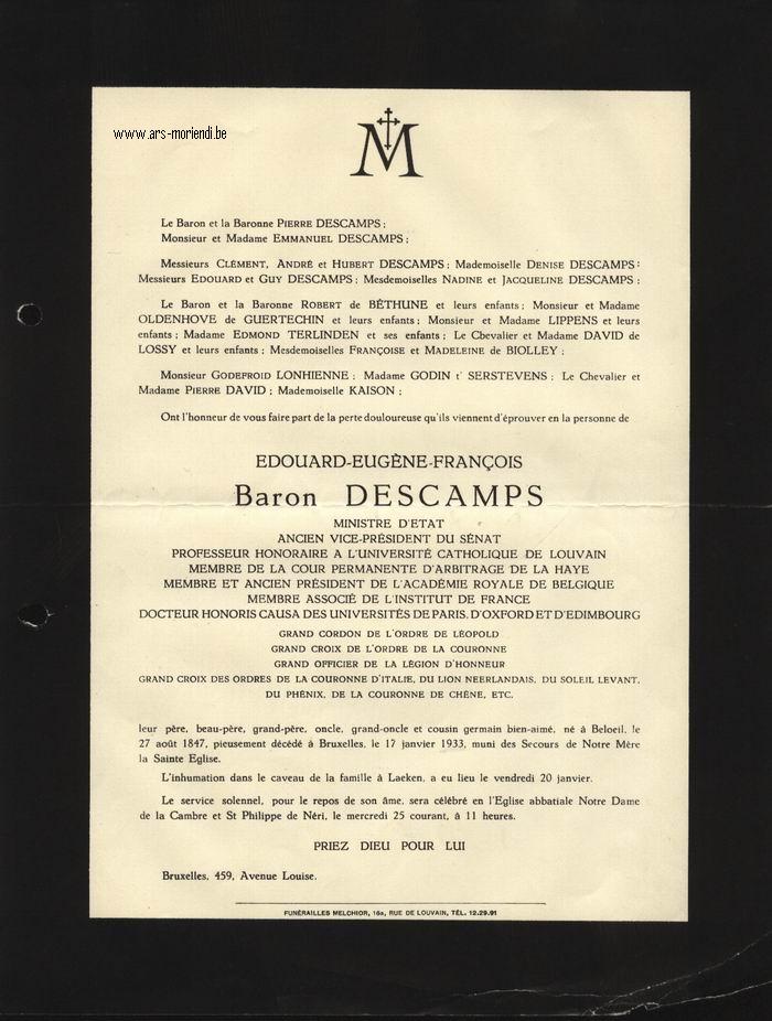 Grootkruis Leopoldsorde en Kroonorde, Burgerlijk Kruis 1ste Klasse, Regeringsmedaille van Koning Leopold II, Herinneringsmedaille van het Eeuwfeest.