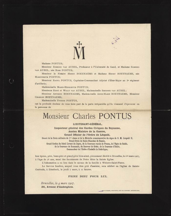 Geboren te Aat op 26 maart 1829 en overleden te Brussel op 1 maart 1907.