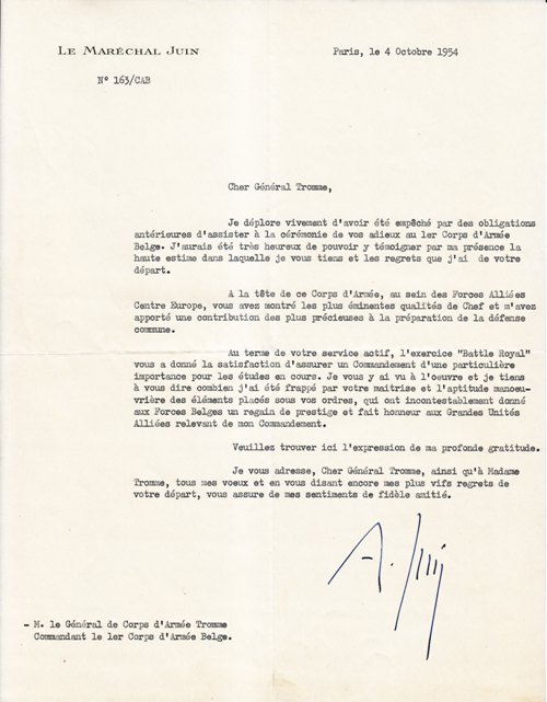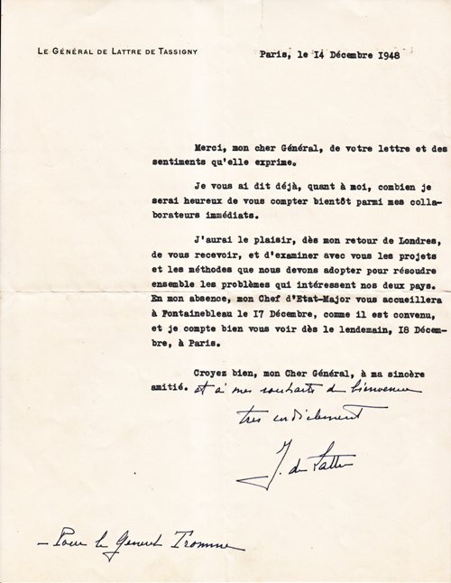 -Désigné pour être sous-chef d'état-major du Commandement en Chef des Armées de Terre de l'Union de l'Europe Occidentale, par D.M. 632 A/1483 du 17 décembre 1948.